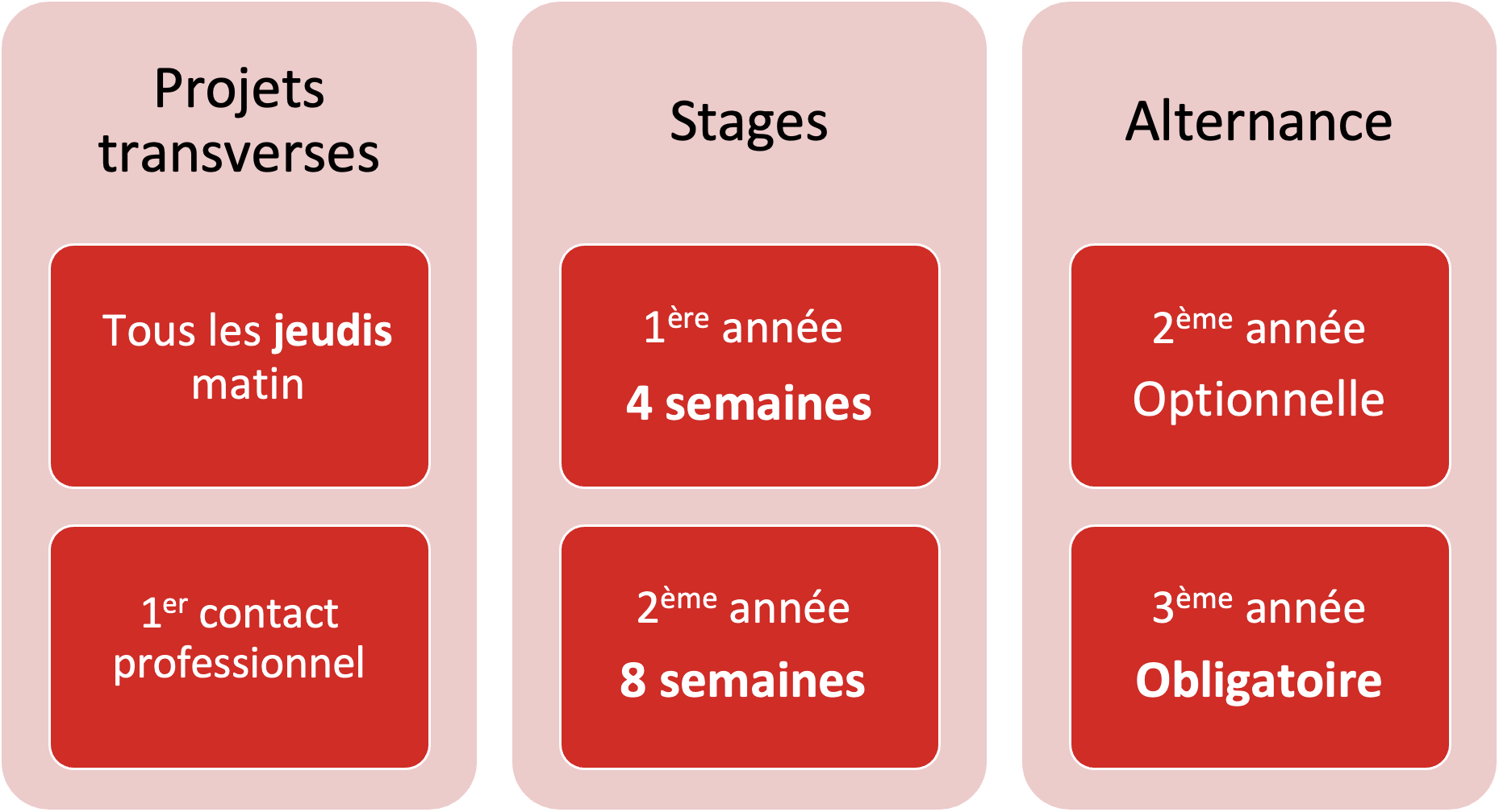 Le stage de deuxième année devra être chois en fonction de la spécialité suivie au cours de la deuxième année. Par exemple un élève ayant suivi le parcours MPV (marketing et management du point de vente) a de forte chance de se retrouver en point de vente lors de son stage.